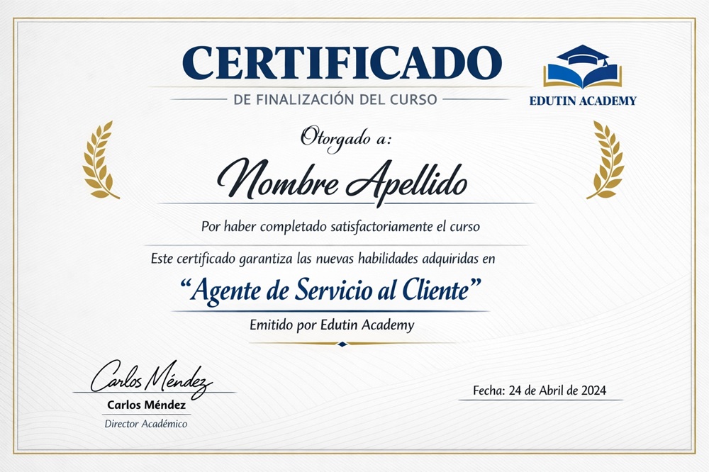 Si. Al finalizar el curso obtienes un Certificado Internacional de “Agente de Servicio al Cliente” emitido por Edutin Academy.