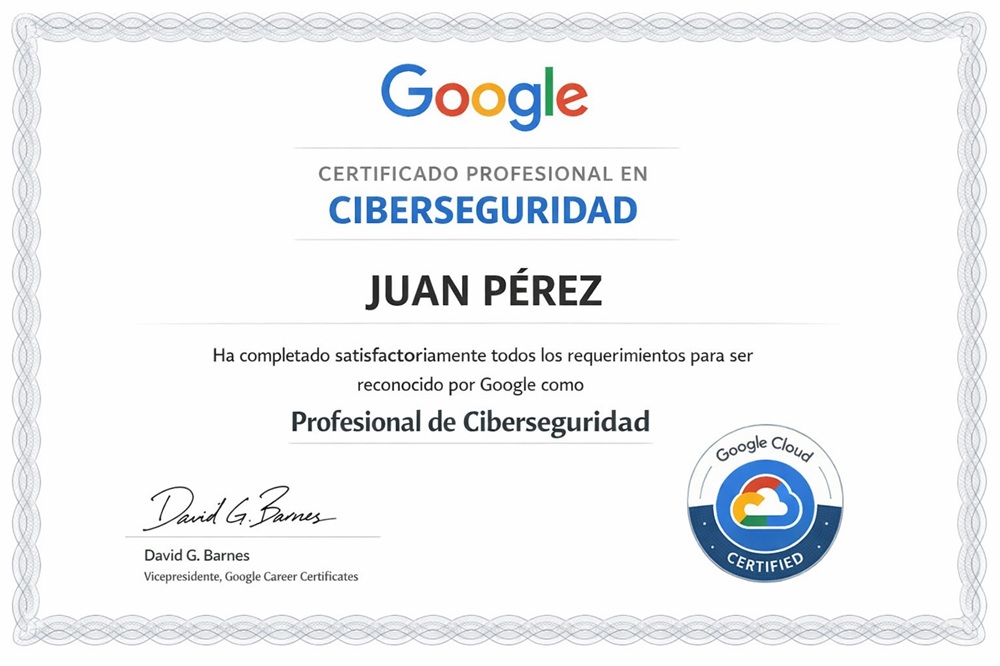 Sí, al final del curso obtienes un Certificado Profesional de Ciberseguridad emitido por Google