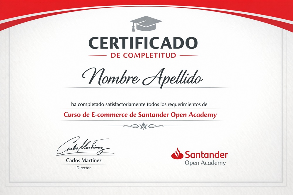 Sí, al final del curso obtienes un Certificado E-commerce con Gestión Comercial emitido por Santander Open Academy.